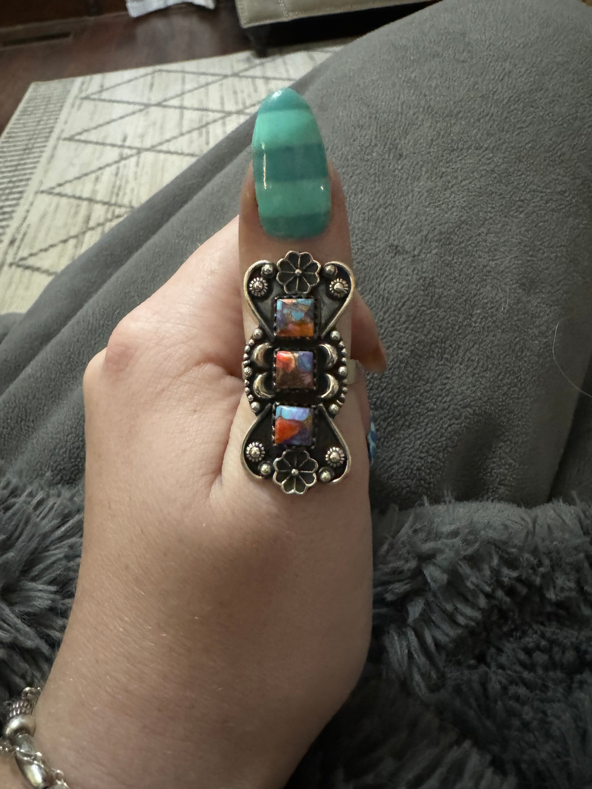 Pink dahlia 3 stone adjustable ring