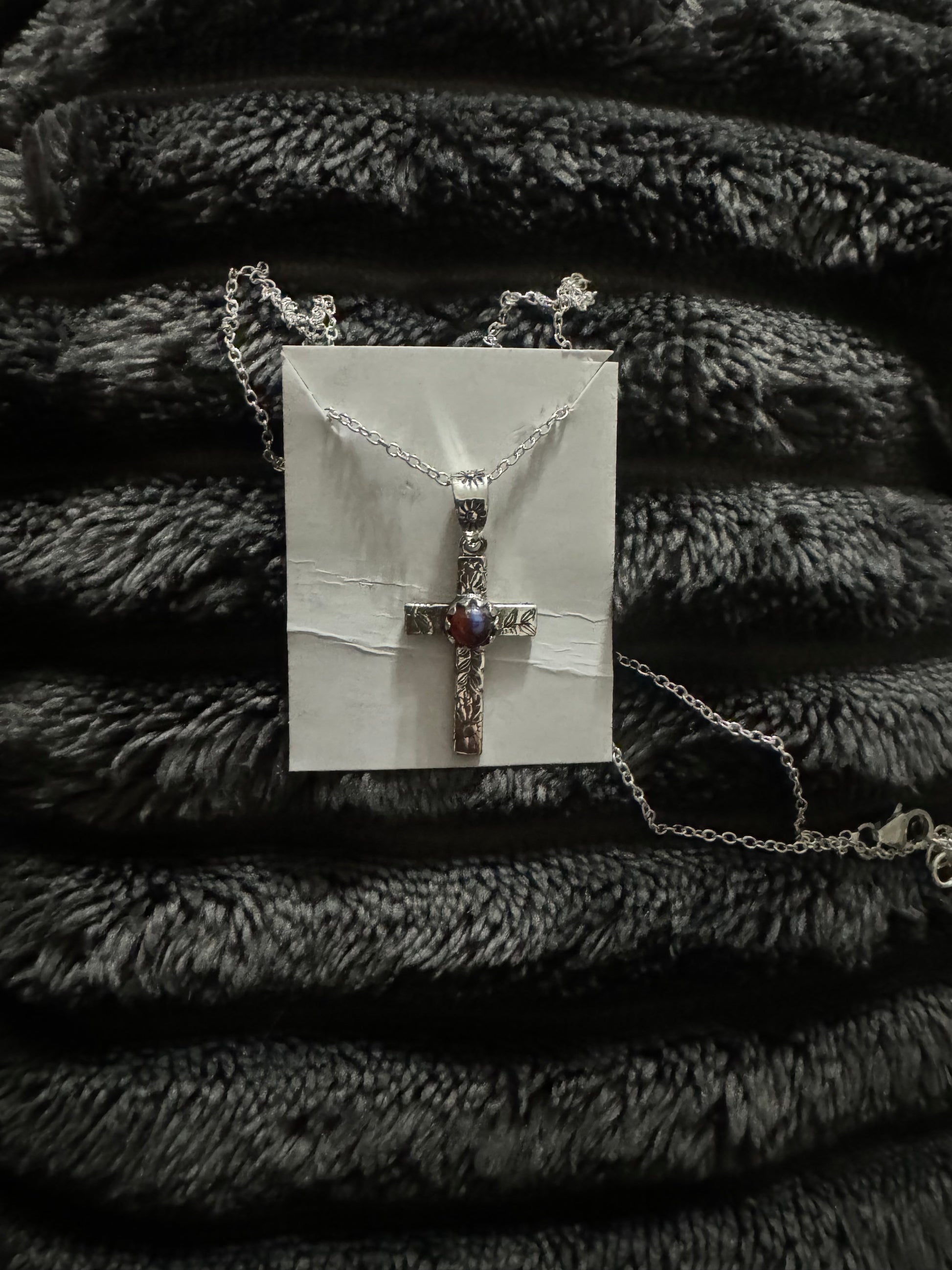 Pink dahlia dainty cross necklace