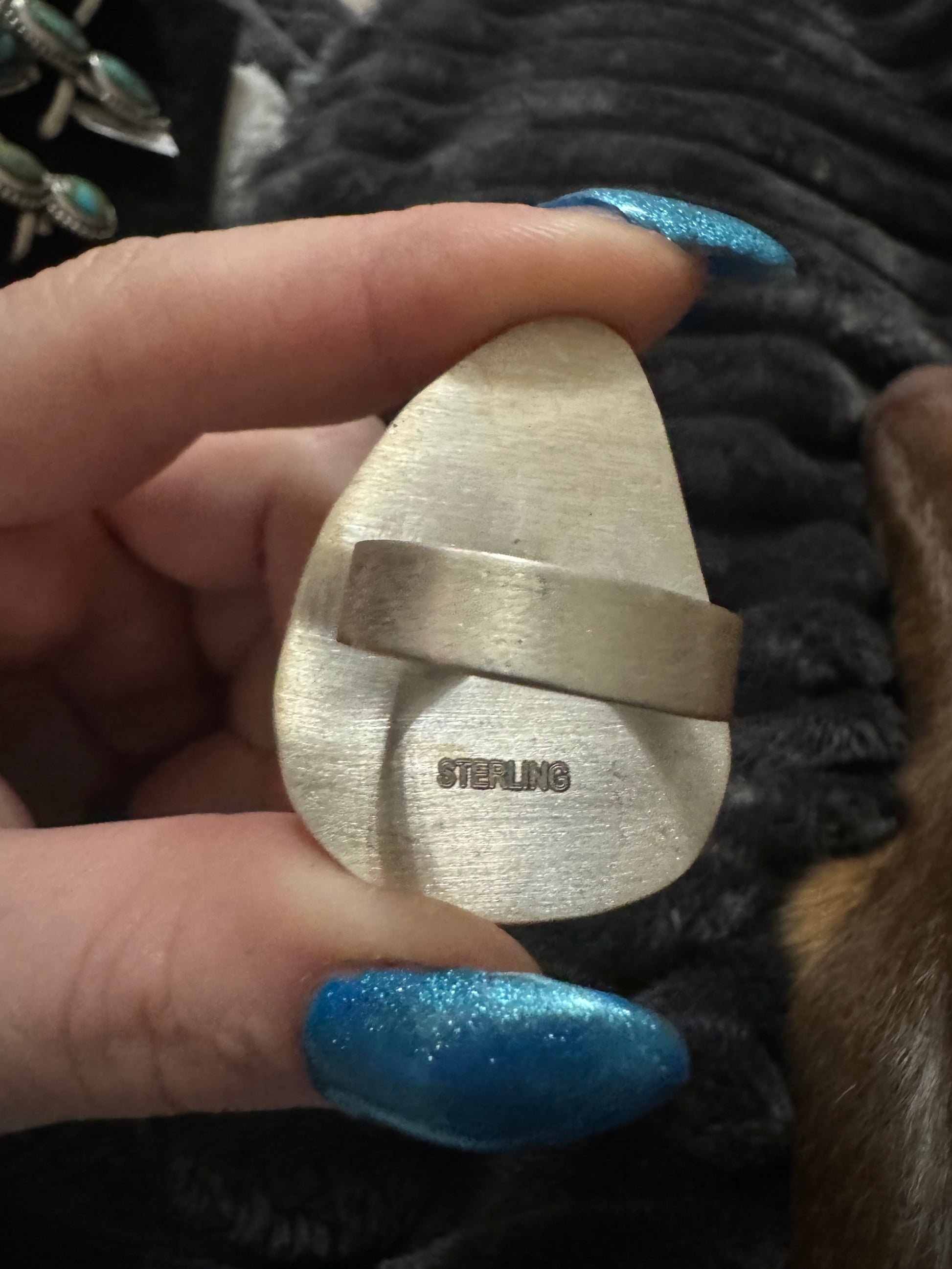 Turquoise teardrop large adjustable ring